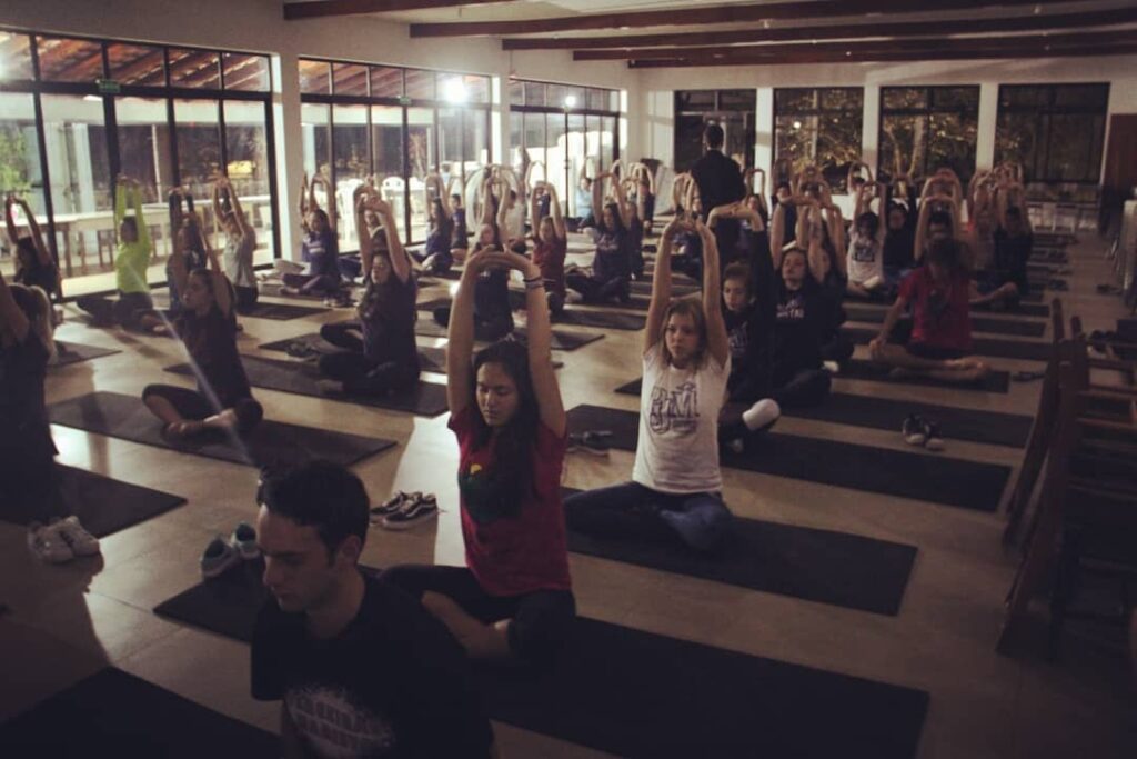 Aulão de yoga para adolescentes em um fim de semana de vivência marista.